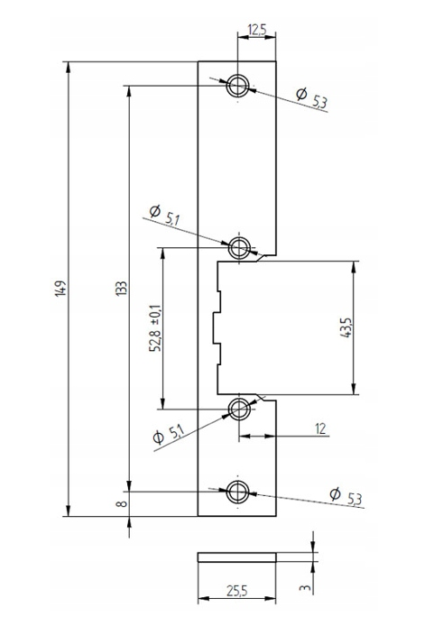 - Wymiary w mm (sz. x wys. x gł.): 148 x 27 x 3[mm]