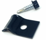 Przelotka metalowa płaska do słupków prostokątnych – uchwyt do paneli w komplecie z wkrętem czarnym 4.8 x 19 samowiertnym z łbem na klucz
